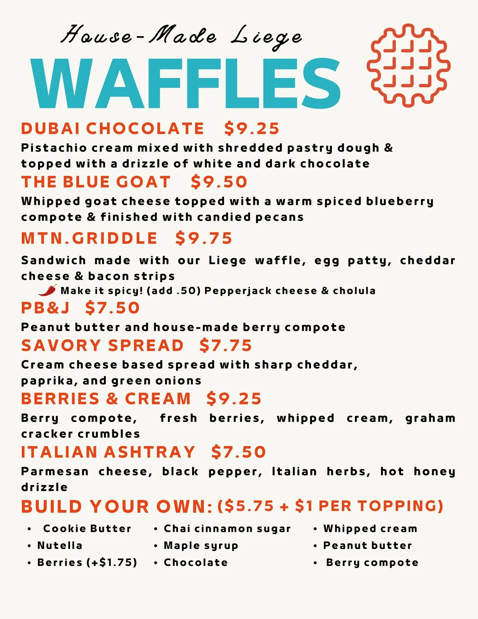 Liège Waffle Menu